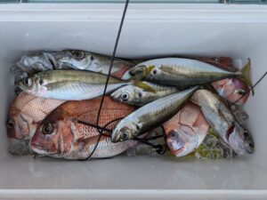 序盤はマダイを狙い型を見たところでアジへ。
