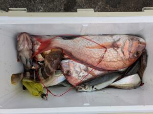 釣果 | マダイ 0.5~1.7kg 2~5枚・アジ 30cm前後 30匹 他 カイワリ、ハタ |