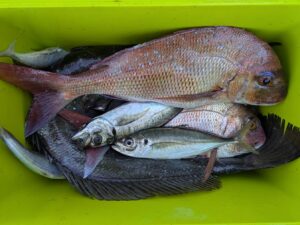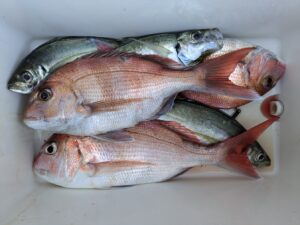 | 釣果 | 0.7㎏~1.7㎏ 2~3枚 他 アジ、サワラ、ニベ |