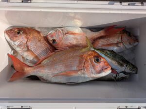 | 釣果 | 0.6㎏~2.2㎏ 1~5枚 他 中~大アジ |