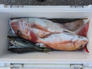 釣果 0.8㎏~3.34㎏ 2~2枚 他 アマダイ、中~大アジ