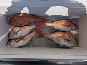 | 釣果 | 0.6㎏~1.5㎏ 2~7枚 他 ハナダイ、アジ |